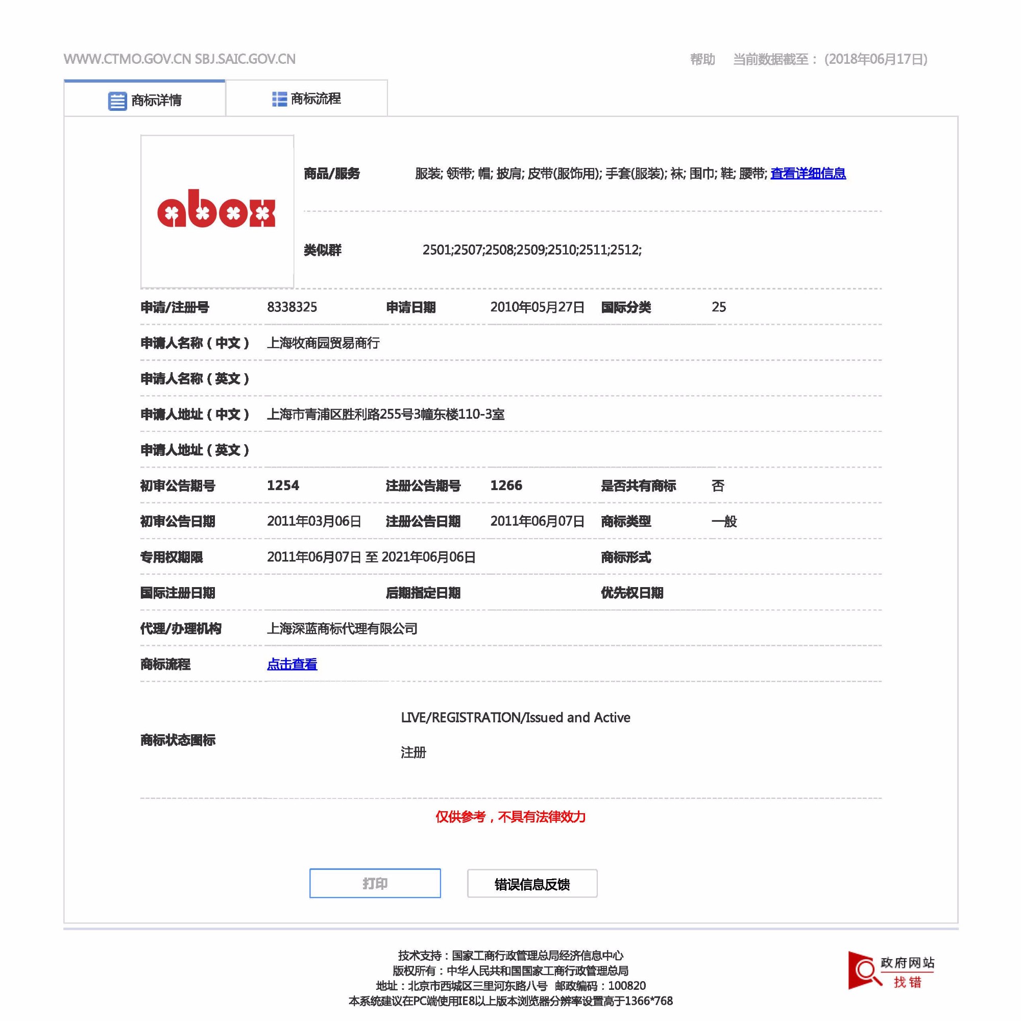 商標注冊地址:上海市青浦區勝利路255號3幢東樓110-3室。